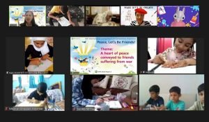 Muhammad Usaid (11) explained the work by saying, “Stop killing people with weapons. The world needs peace and unity because we stand with people who are going through war.”